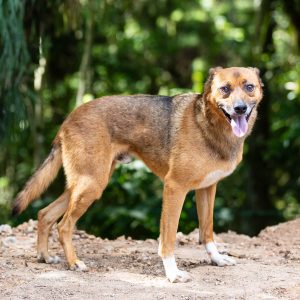 Fui resgatado após ser atropelado em 2020, precisei passar por cirurgia, fisioterapia, mas hoje já estou bem, posso correr por ai e estou prontinho para ter um lar.